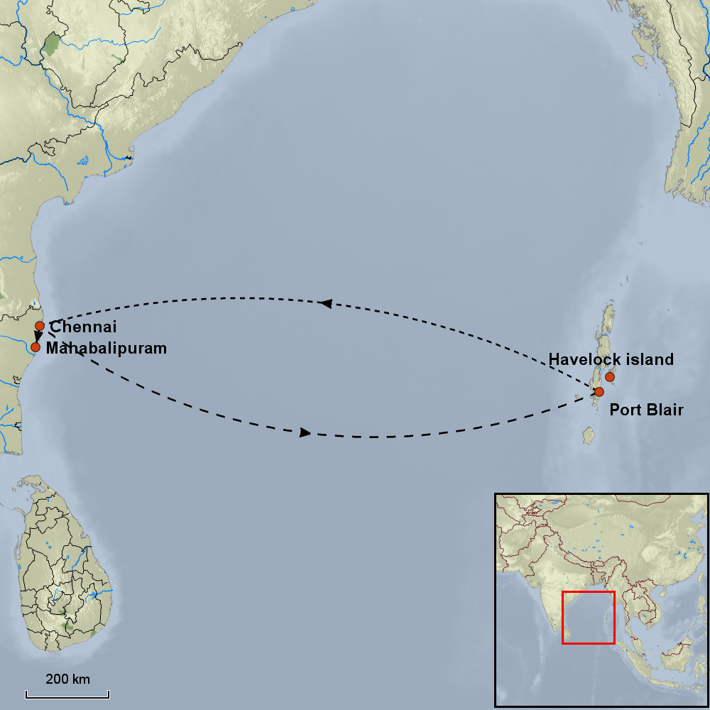 You will drive to Chennai airport (1.5 hrs) for your flight to Port Blair
