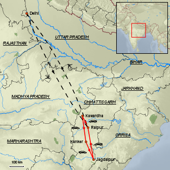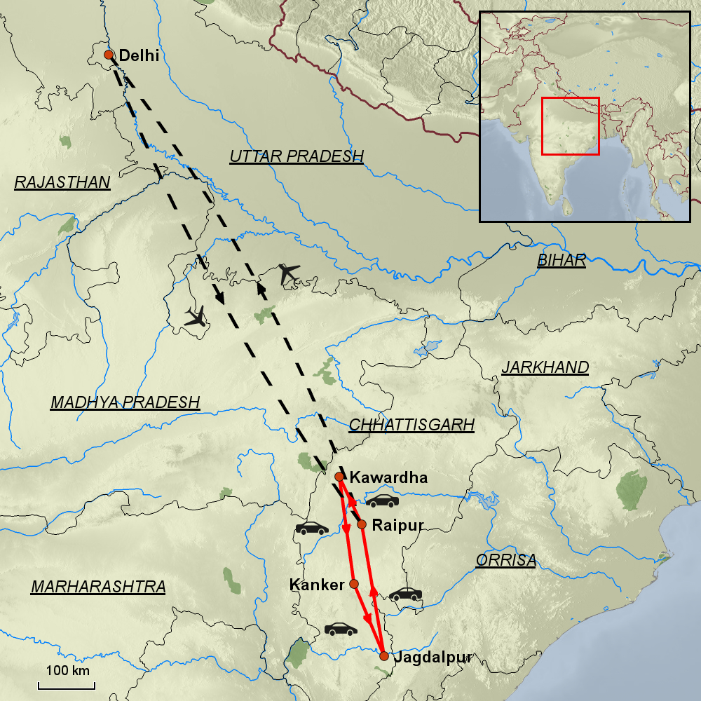 DELHI – KAWARDHA – KANKER – JAGDALPUR – RAIPUR – DELHI