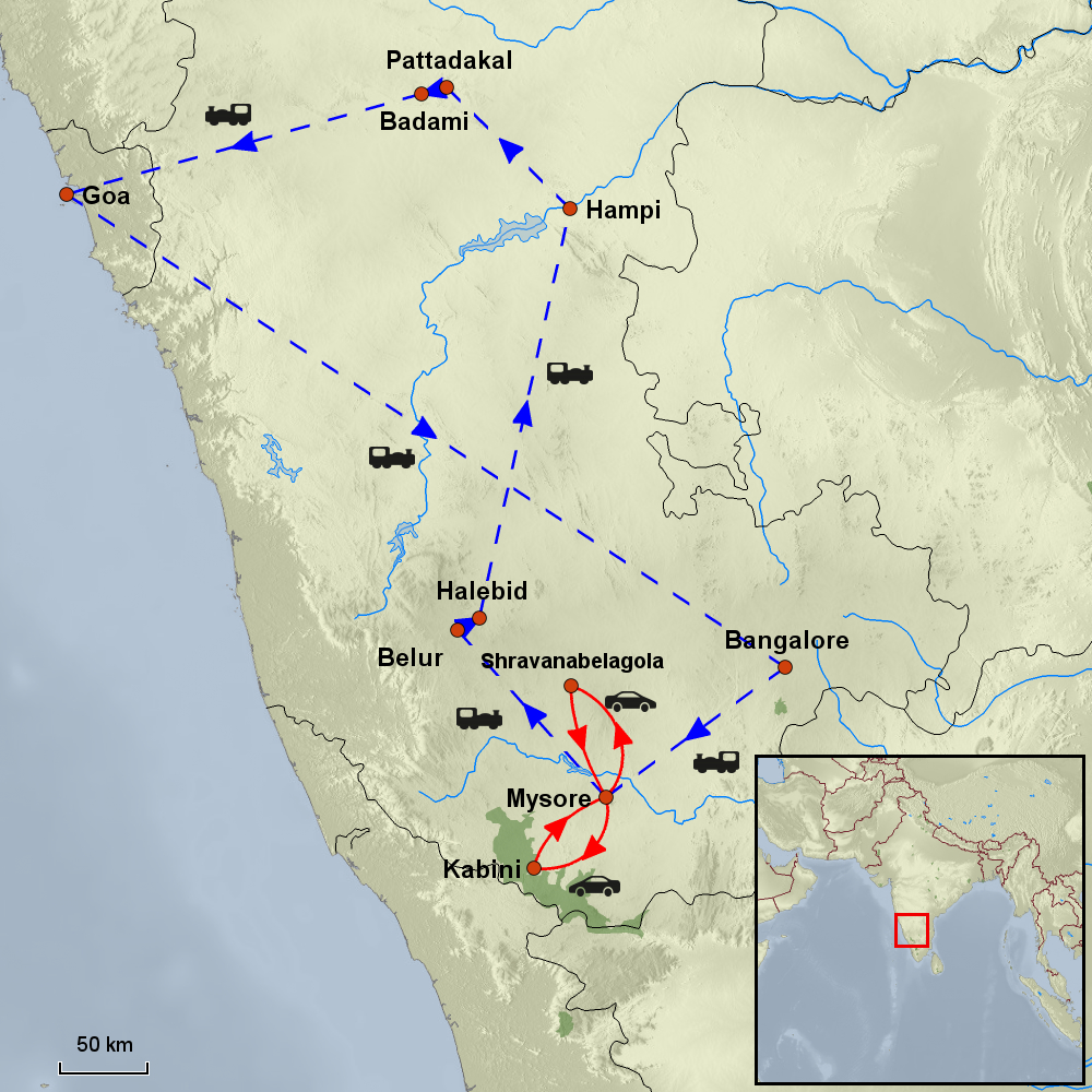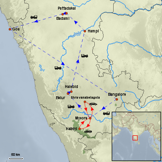 The train sets off early morning bound for Hassan. After breakfast depart by road to Shravanabelagola where you can climb the 700 steps to the top to see the monolith Bhagawan Bahubali.