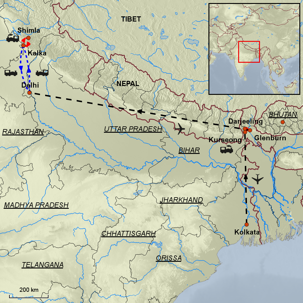 DELHI – SHIMLA – DELHI – KURSEONG – DARJEELING – GLENBURN – KOLKATA