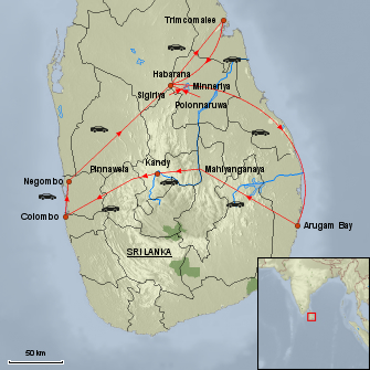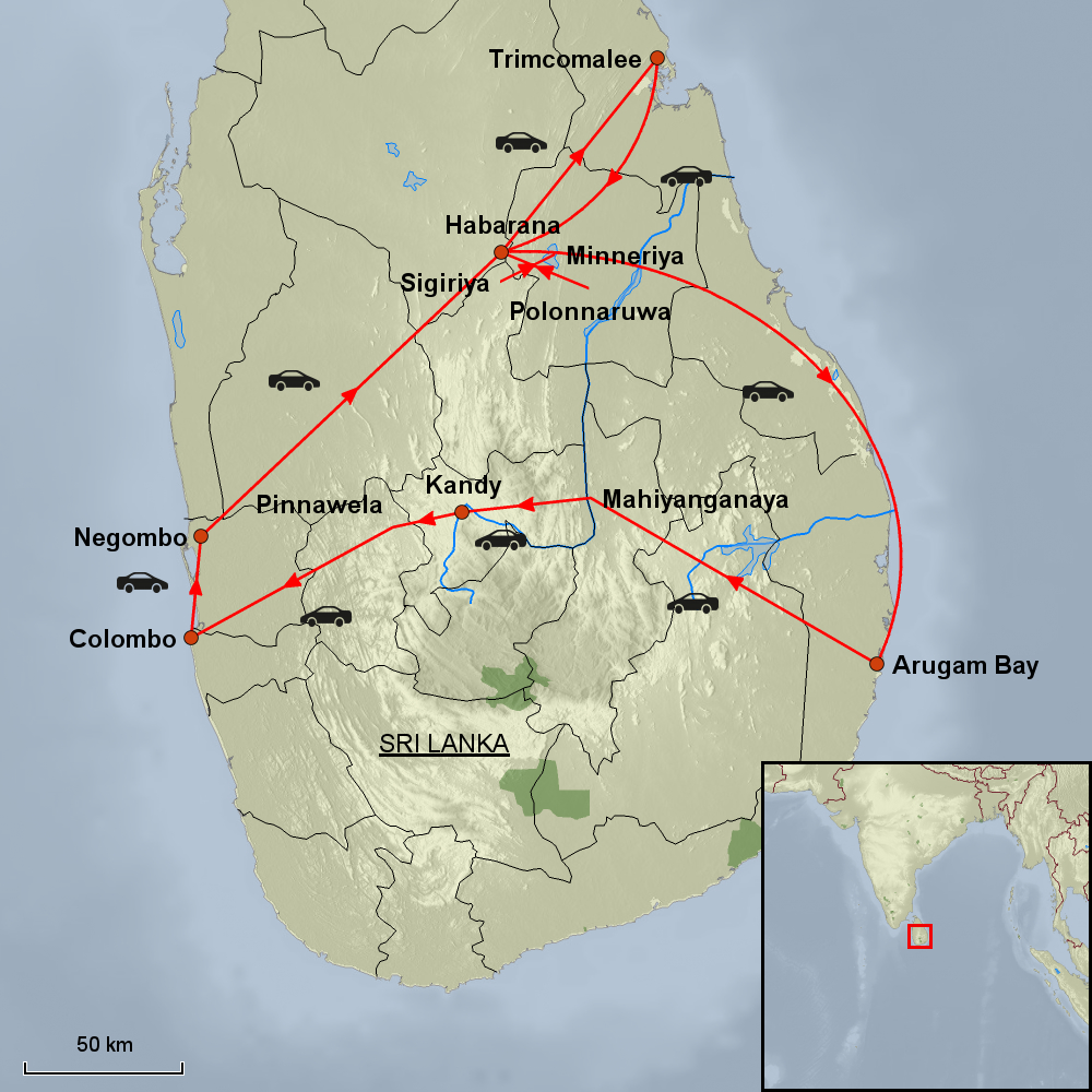 NEGOMBO –TRIMCOMALEE – HABARANA – ARUGAM BAY – KANDY – COLOMBO